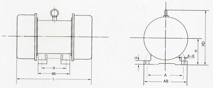 YZU型糧機專用振動電機技術參數及安裝尺寸